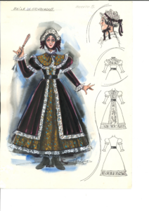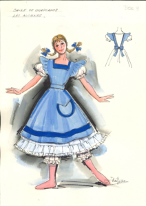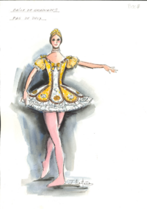 Julio Castaño, toma la historia planteada por Lichine, y parte de los diseños originales creador por Alexander Benois, personalizándolos en su visión, que utiliza por su experiencia de los años que estudió y vivió en España.