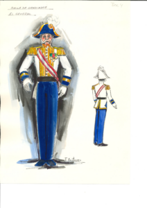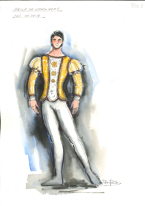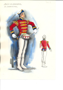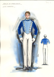 Este diseño, que realiza para el Ballet de Cámara de Madrid y que la compañía fundada por Alicia Alonso aún mantiene en el repertorio activo, siendo una de las piezas de más éxito, en el que vemos como Castaño reinterpreta el universo vienes mezclándolo con un colorido simbólico, utilizando el contraste de trajes amarillos y azules, además de interpretar de manera magistral los chaqués militares de la época.