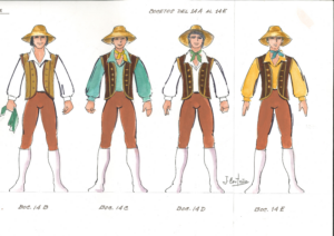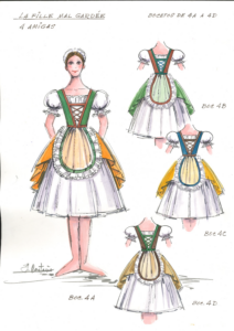 Para esta producción Julio Castaño diseña tanto la escenografía como el vestuario destacando la utilización de un comodín, en una clara referencia a las puestas en escenas de óperas y ballets del siglo XVIII. Castaño además diseña el espacio escénico con la utilización de dos telones, a diferencia de los ya tradicionales paneles diseñados por Salvador Fernández, apostando por una producción de corte tradicional, acorde con la estética de ballet pastoril que utiliza Castaño para ambientar este ballet comedia, cuya referencia también vemos en el colorido de los diseños de vestuario, y en la estética de los mismos.